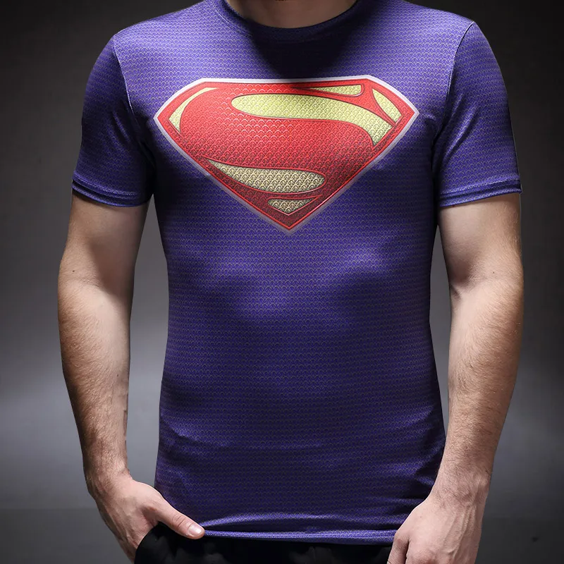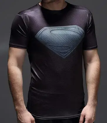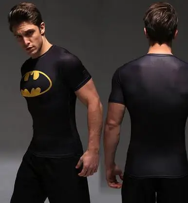 BEST QUALITY Male quick-drying fitness 3D printing short-sleeve Super man Batman elastic t-shirt anime cosplay c