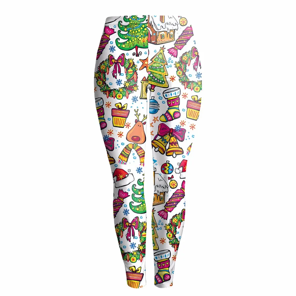 Best Quality Mid Waist Pants Trouser Women Printed Christmas Trees Casual Waist Skinny Pants Sweatpants Fitness