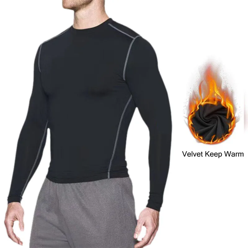 UABRAV Men's T-shirt Running Long Sleeves T-shirt Velvet Warm Tight Compression T-shirt Fitness Gym