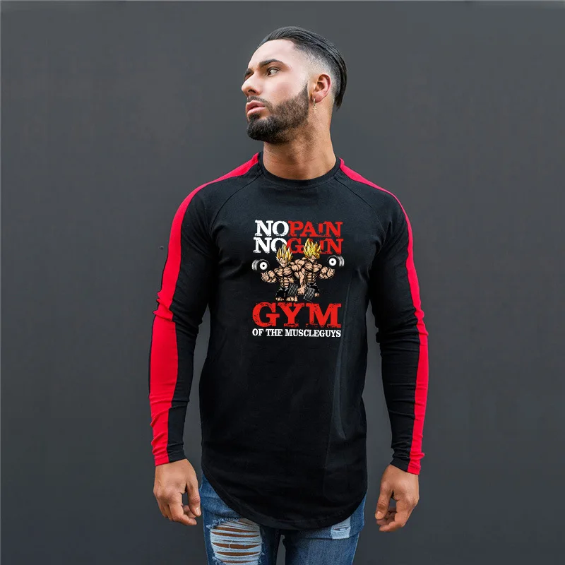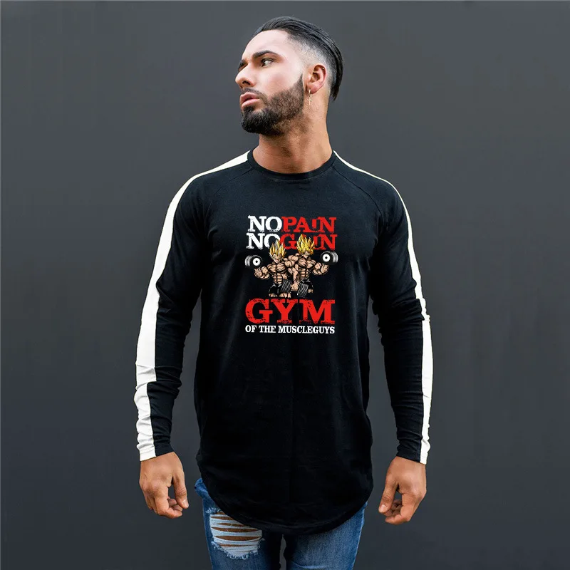 HOT SALE Printed round colla Men's Running Shirts Fast Cool Training T-Shirt long Sleeve Quick Dry Sports To