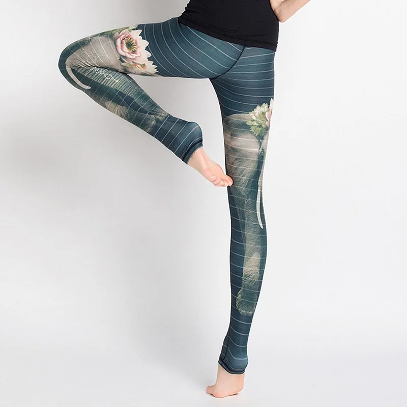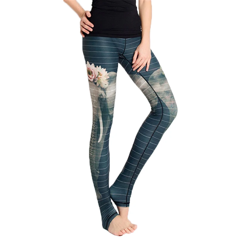 2018 Multicolor Stripe Printing Women's Leggings Sexy Black Push Up Slim Pants Force Exercise Elast
