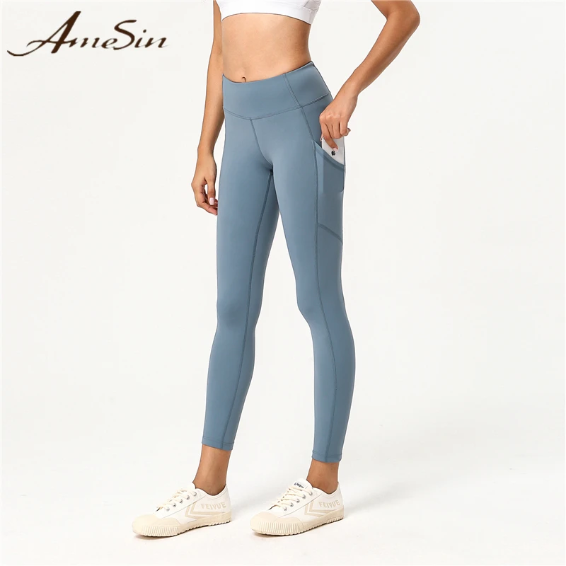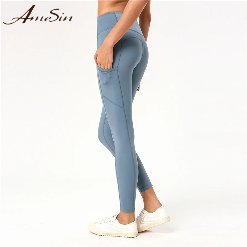 ORIGINAL AmeSin High Waist Out Pocket Yoga Pants Tummy Control Workout Running 4 Way Stretch Yoga Pants Comf