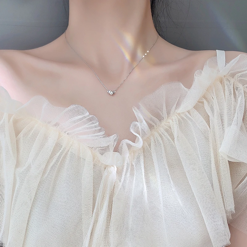 100% 925 Solid Real Sterling Silver Jewelry 0.5*0.8cm Heart Pendant 40cm+4cm chain Short Clavicle N