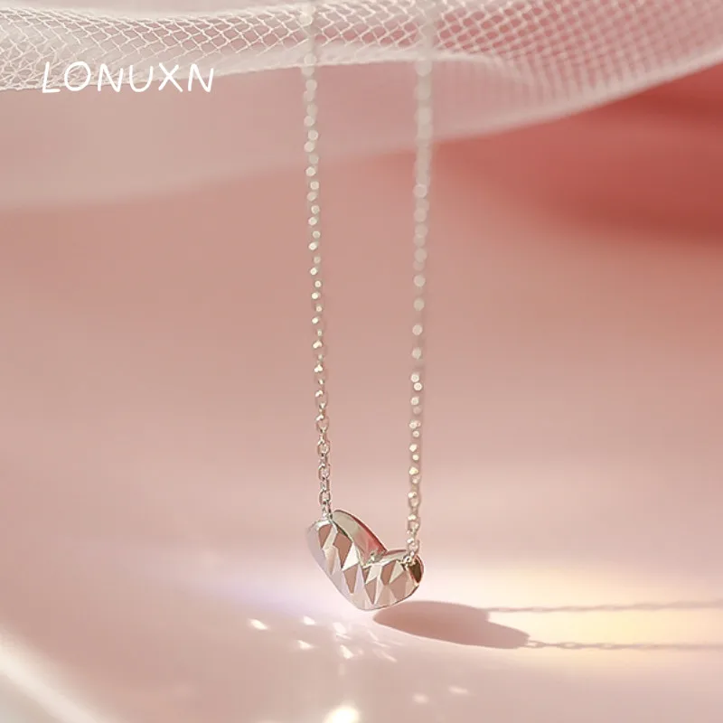 REVIEW TOP SELLER 100% 925 Solid Real Sterling Silver Jewelry 0.5*0.8cm Heart Pendant 40cm+4cm chain Short Clavicle N